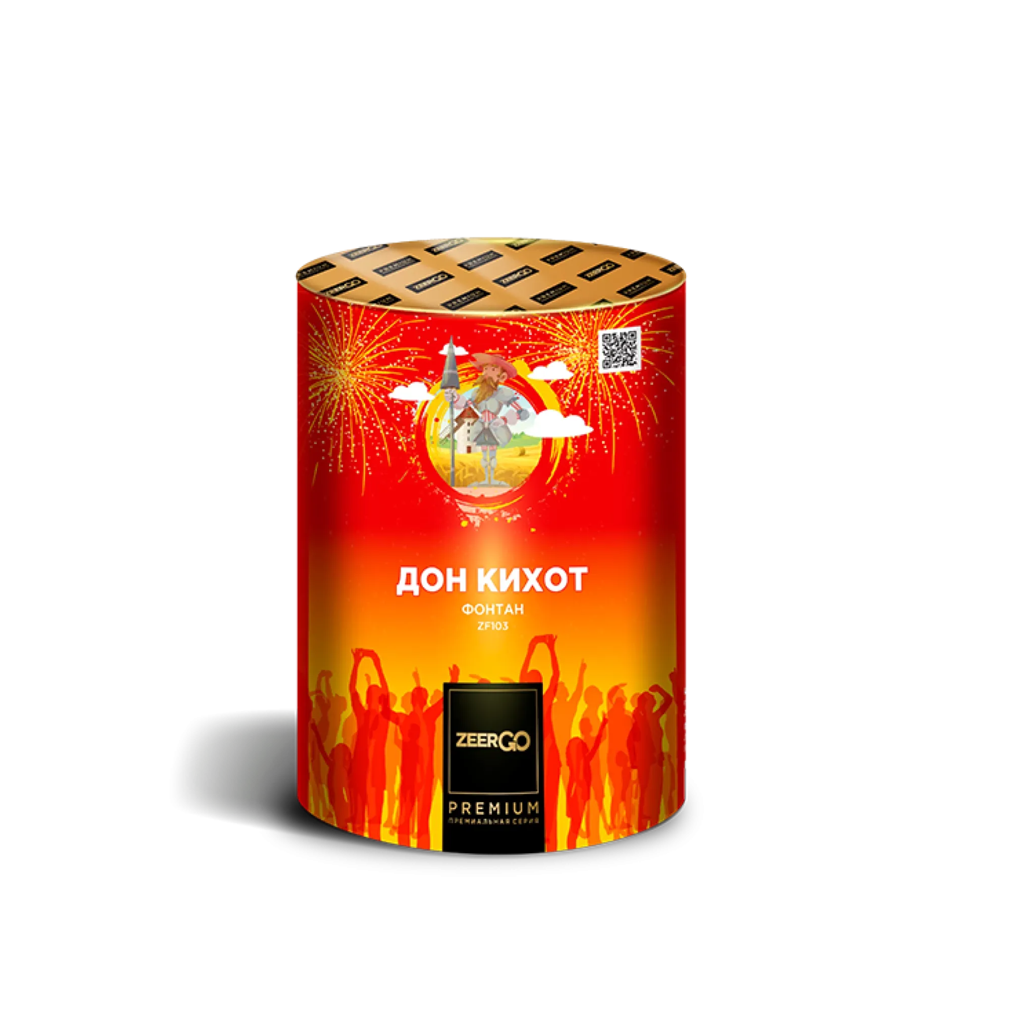 Пиротехнический фонтан Дон Кихот Москва ZF103 купить 580 руб. высота форса 1.5 м. время работы 33 сек. Зерго фирменный магазин доставка домой в Москве | piroclub.ru