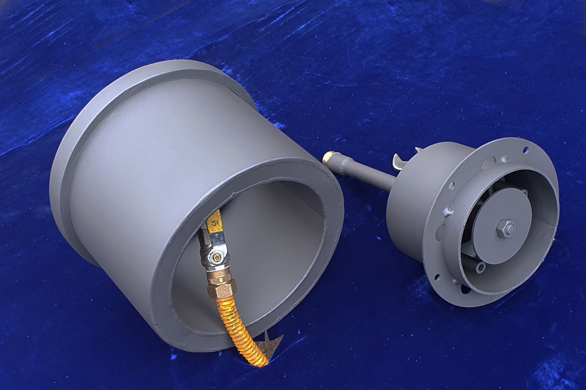 Горелка ветроустойчивая диффузионная серии ГВД 379 10 89 00 ПС представляет собой устройство предназначенное для сжигания природного или сжиженного углеводородного газа низкого давления с целью получения устойчивого визуального эффекта – ярко-желтого цвета огненного факела. Горелка поставляется с дополнительным модулем (монтажный картридж - для звезды из природного камня).