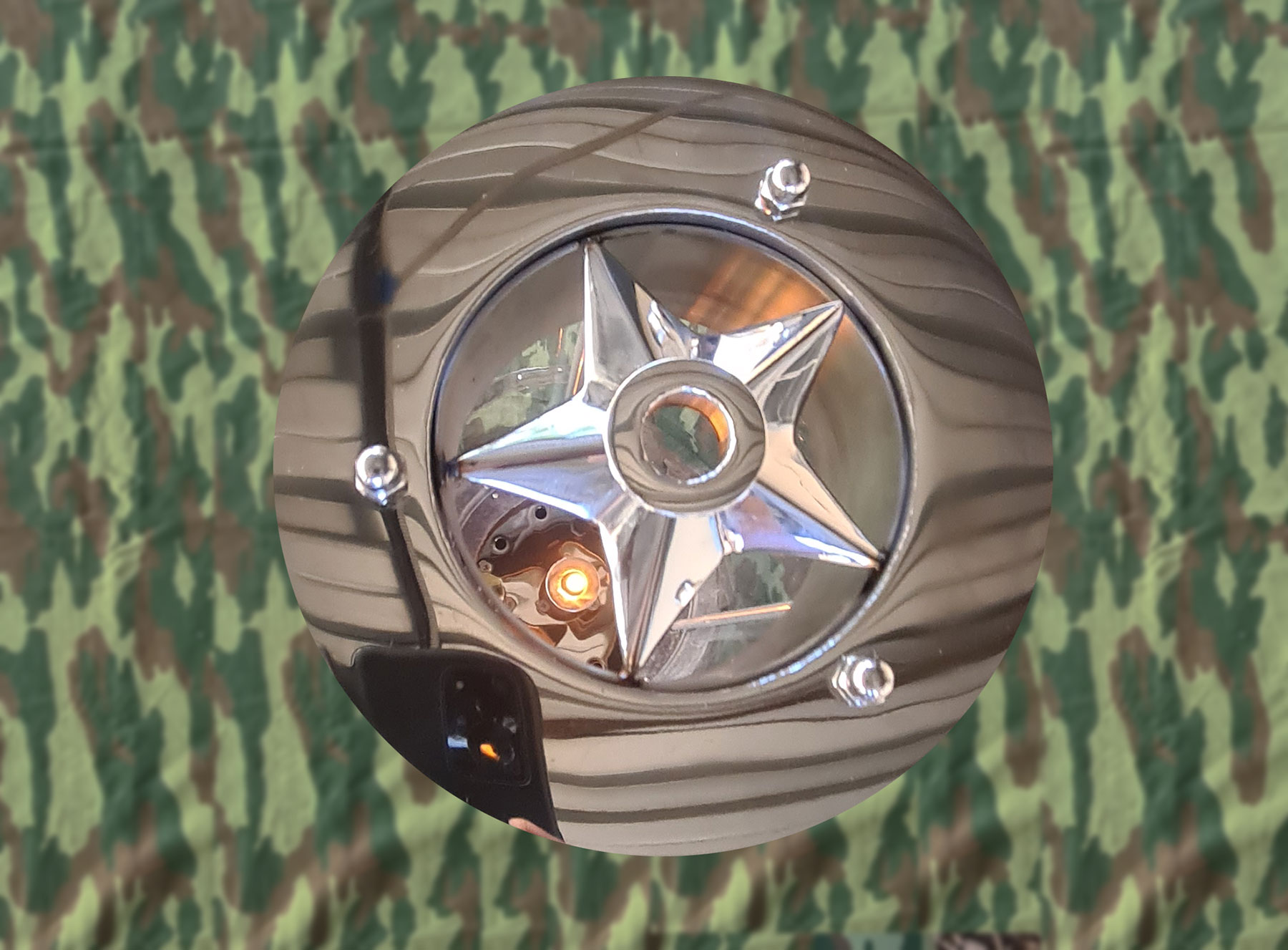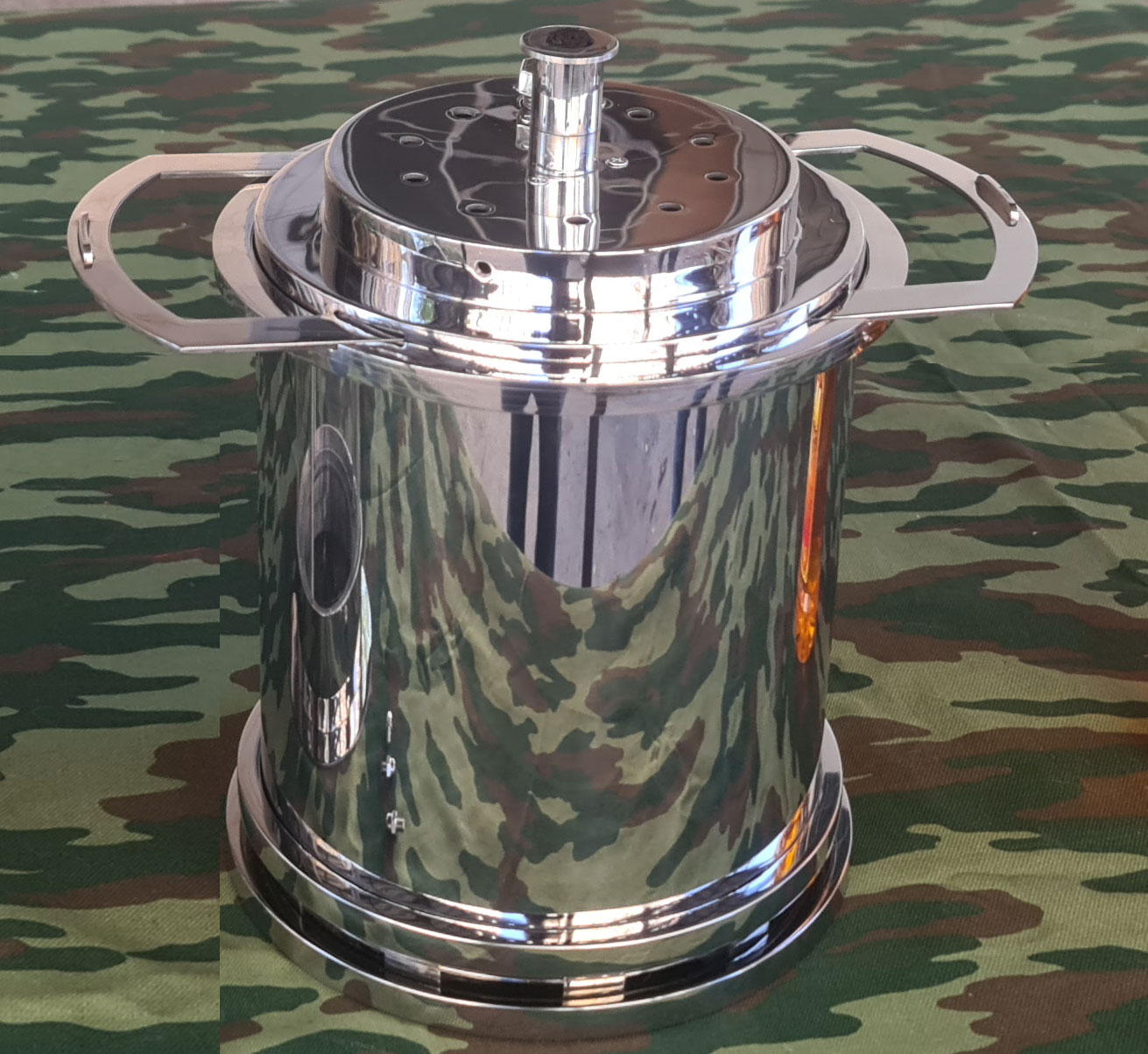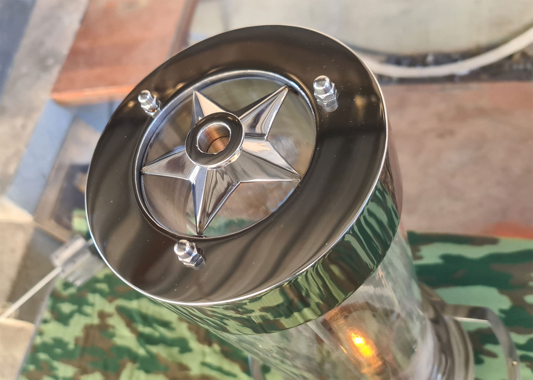 Материал изделия – полированная нержавеющая сталь AISI304 с толщиной стенки не менее 2 миллиметров. Высота капсулы по центральной оси 800 миллиметров, диаметр по наибольшему замеру 250 мм, диаметр стеклянной колбы 170 мм. Вес изделия 7,5 килограмм.