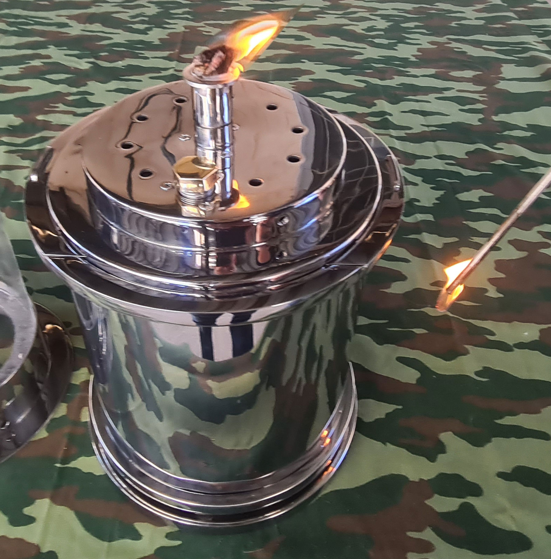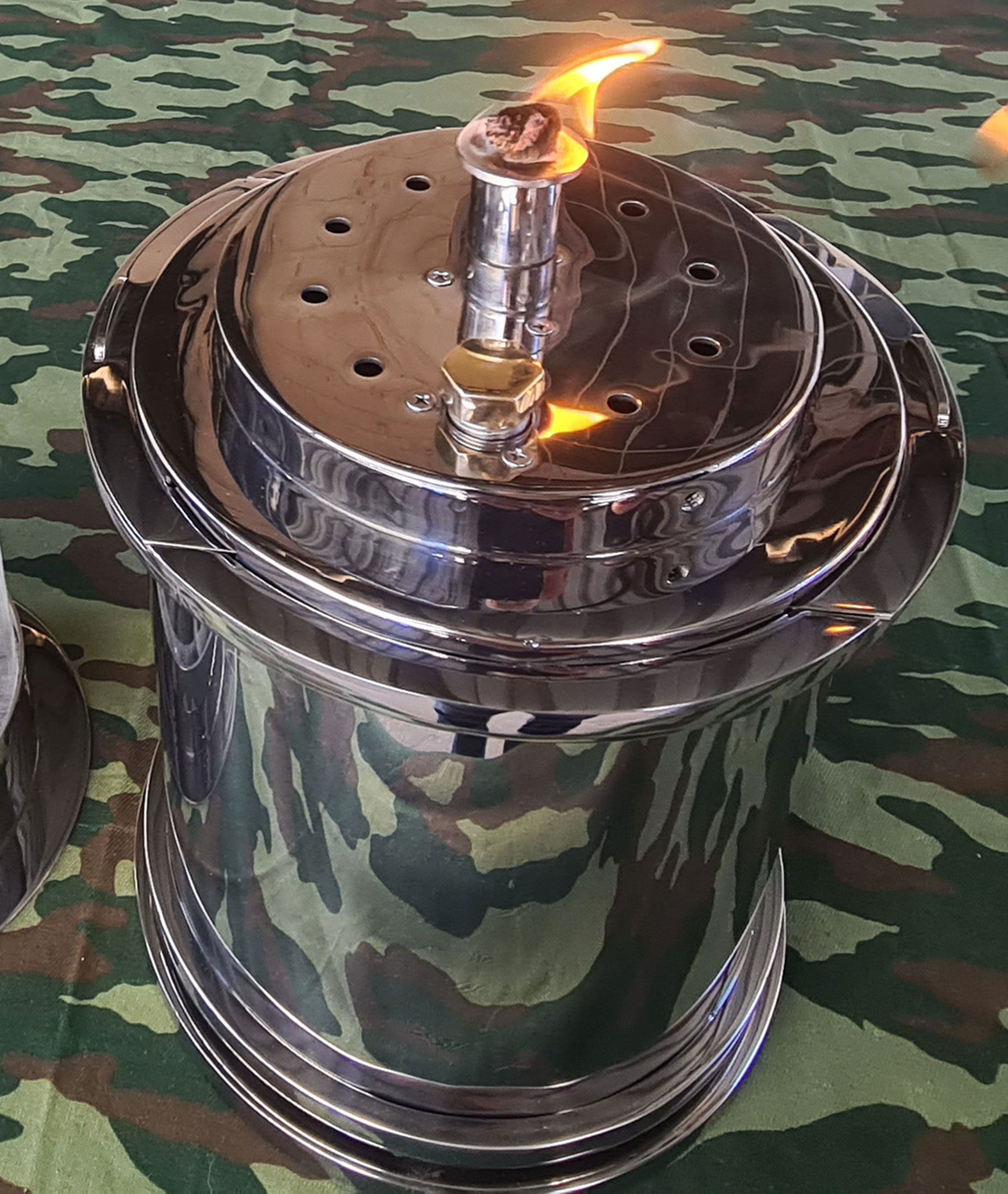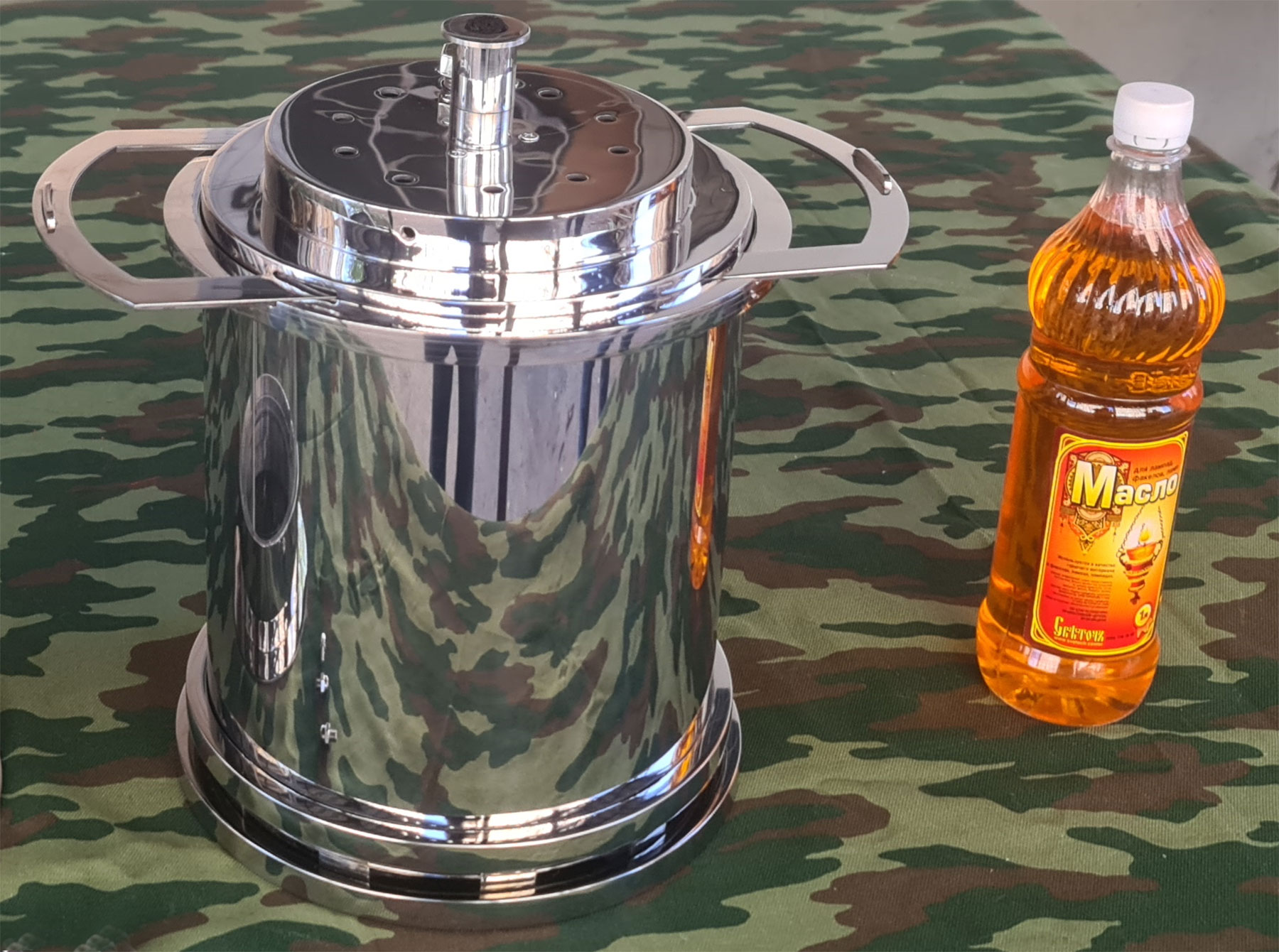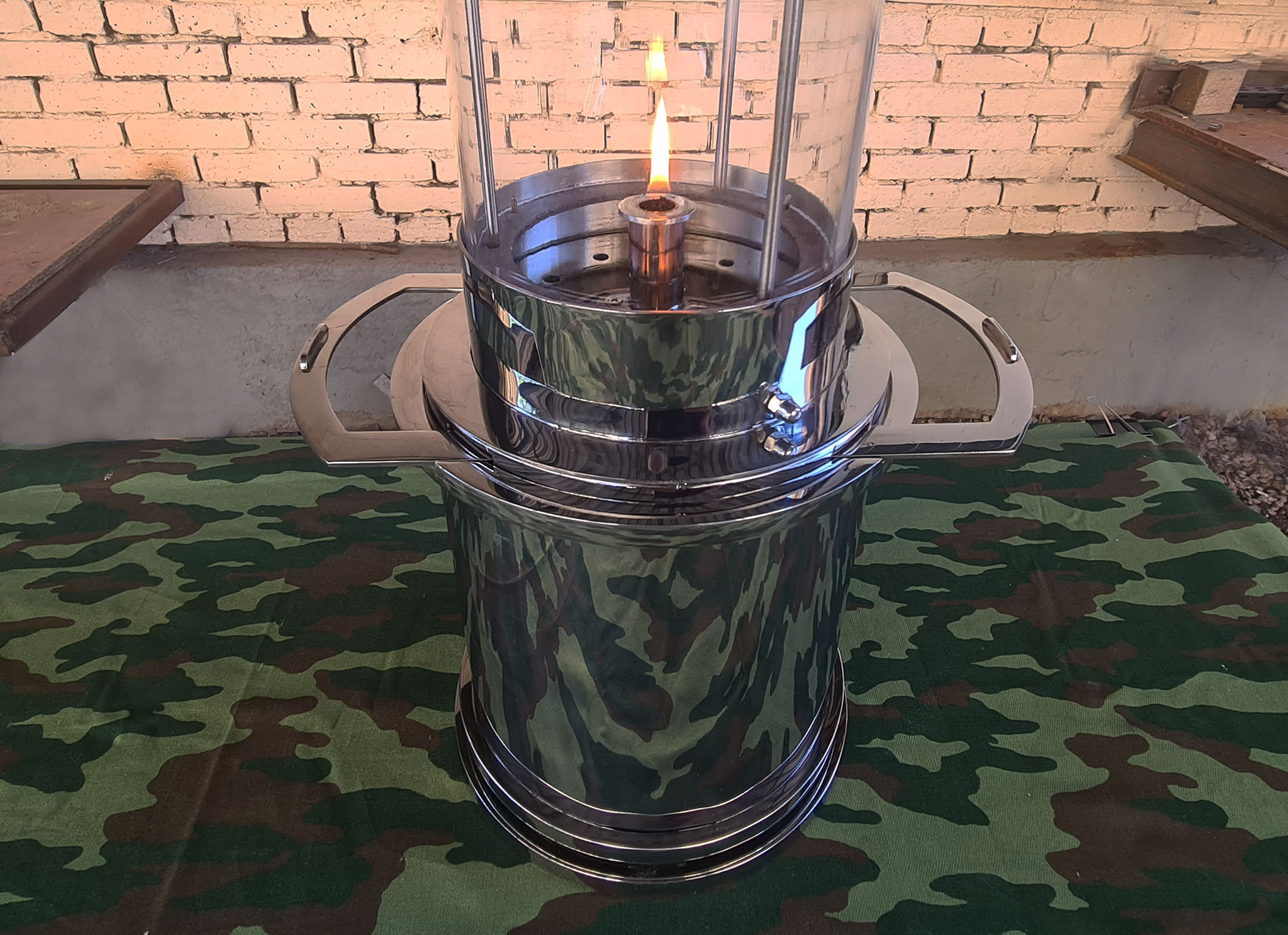 Светильник хорошо работает на топливе для заправки масляных ламп низкой температурой языка пламени. Норма заправки топливной ёмкости 1,5 литра горючей жидкости, расход топлива - 15 грамм в час, при нормальной высоте пламени, около 3 сантиметров. Светильник для хранения и перевозки вечного огня комплектуется лучинкой для забора и розжига пламени.
